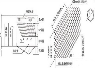 蜂窩斜管填料是根據(jù)“淺層沉淀”理論為基礎設計開發(fā)的一種沉淀池填料,該填料濕周大,水力半徑小,運行時層流狀態(tài)好,顆粒沉降不受紊流干擾,能加速顆粒與水分離并縮短顆粒的沉淀距離。